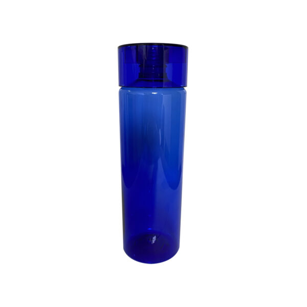 Botella plus azul, 0.9 litros, largo 7.5 ancho 7.5, alto 24.5.