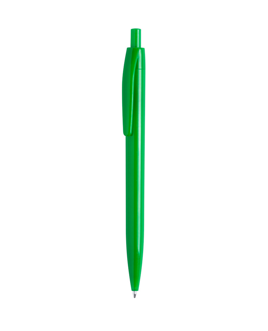 Bolígrafo Verde, original clip metálico troquelado a juego y cómoda empuñadura.
