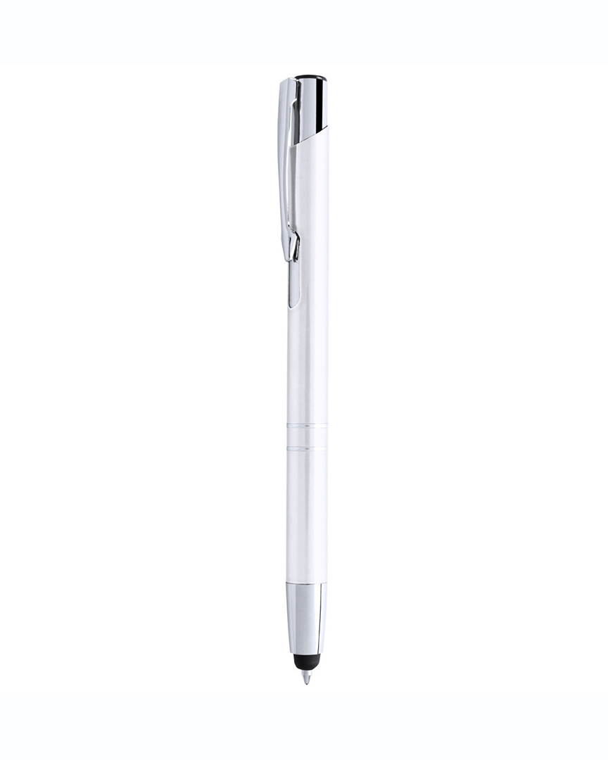 Bolígrafo Puntero Mitch Blanco, Acabado en aluminio brillante, de cartucho jumbo y tinta azul.