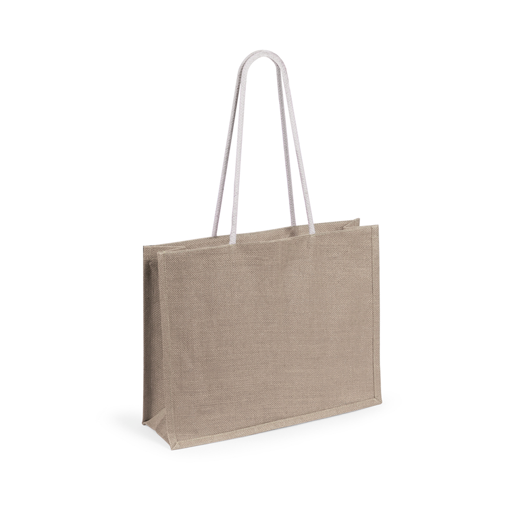 Bolsa de yute con cuerpo variada gama de vivos colores. Con asas de algodón largas de 70cm en color blanco y reforzadas.