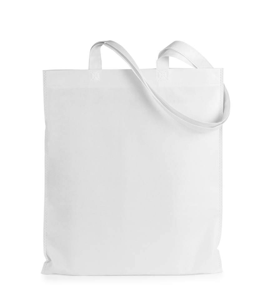 Bolsa fabricada non-woven de 80g/m2. De acabado termosellado y asas largas reforzadas de 68cm
